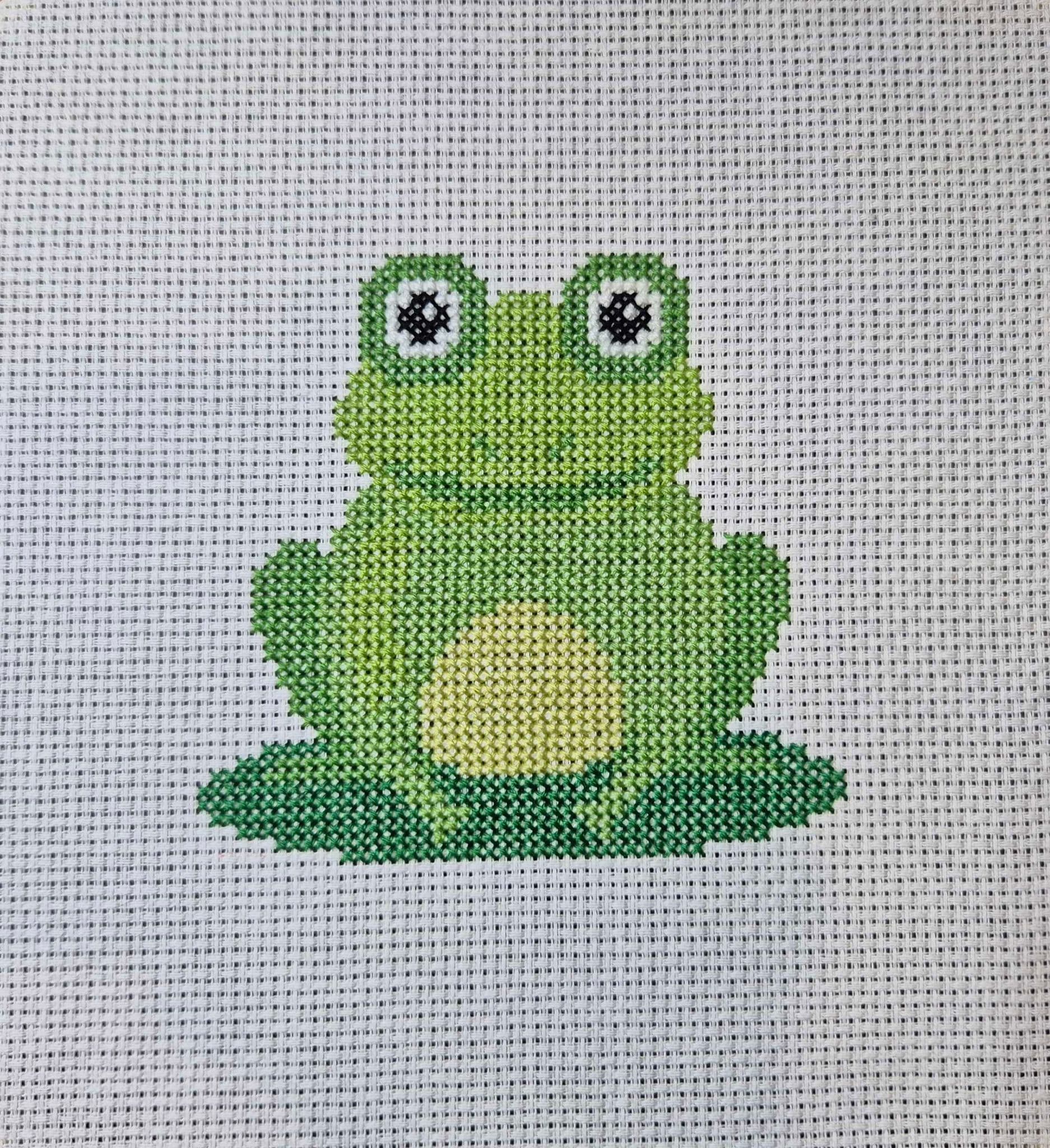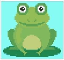 Fernando Frog is a unique cross stitch chart measuring 50 stitches wide by 46 stitches high, and has been charted using 7 DMC colours.