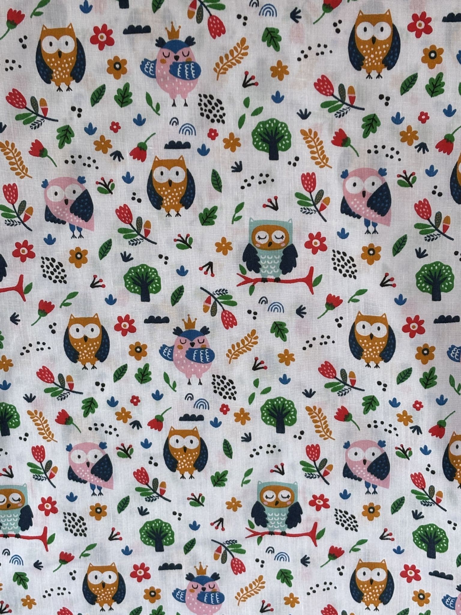 Made by Kim at KLT Charting, this grime guard features cute little pink and brown owls on a white fabric.