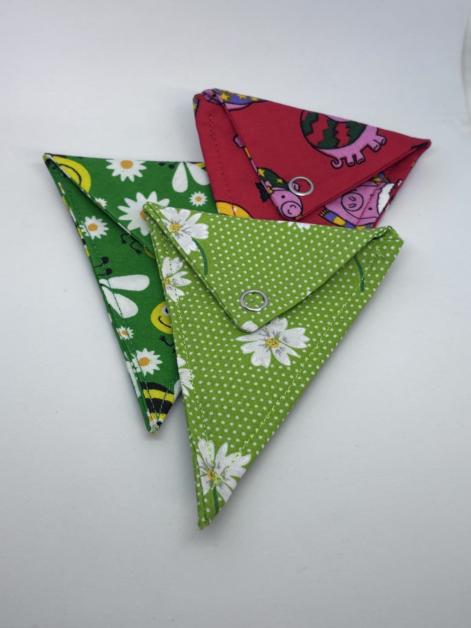 Hand made scissor cases, suitable for 3 and half inch embroidery scissors, as shown in the pictures, in a variety of fabrics. The case stays closed with a metal snap popper.