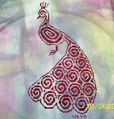 Tribal Peacock is a unique cross stitch chart measuring 74 stitches wide by 127 stitches high and has been designed so you can use whatever colours you choose. It is perfect for hand dyed threads and fabric.