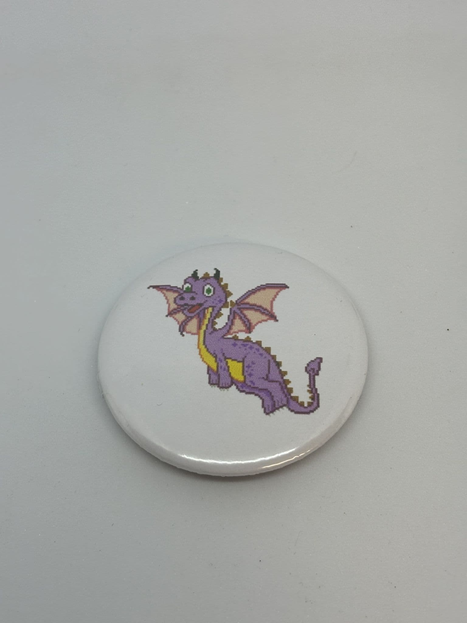 A button needle minder featuring Ziggy the dragon, to attach to your stitching by way of a magnet, so you need never lose your needle again!